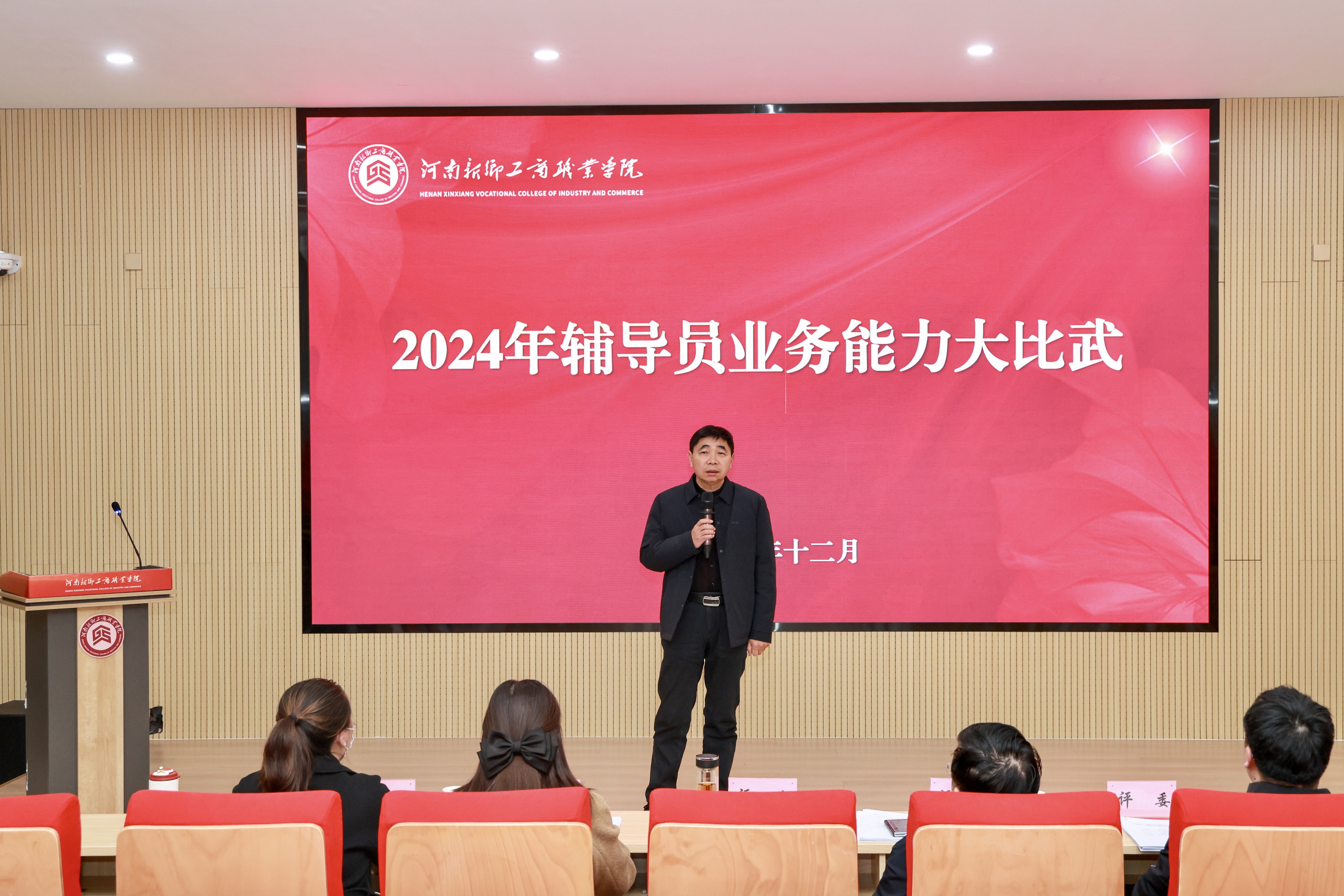 为深入贯彻落实党的二十届三中全会精神和全国教育大会精神,提升学校辅导员队伍的理论水平、专业素养和工作能力,12月19日,我校第一届辅导员业务能力大比武在教学楼一楼报告厅隆重举行。学校副校长武军会出席,党政办公室主任徐宏平、马克思主义学院院长刘琳娜,团委书记、学生处副处长陈佳楠,团委副书记冯远担任评委,全体辅导员到场观摩。